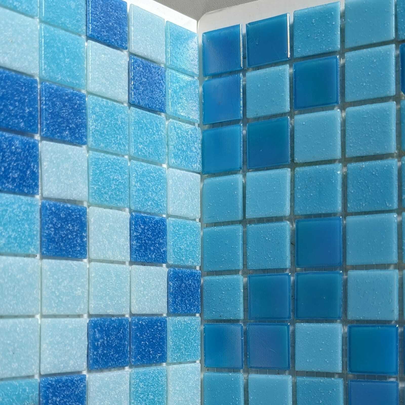 Мозаика на бумаге чаще всего применяется для бассейнов, душевых кабин, улице, т.к. именно такое крепление с лицевой стороны дает наилучшее сцепление мозаики с основой, что позволит избежать выпадания чипов в процессе эксплуатации